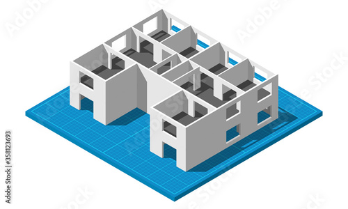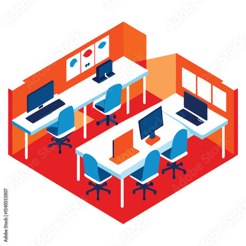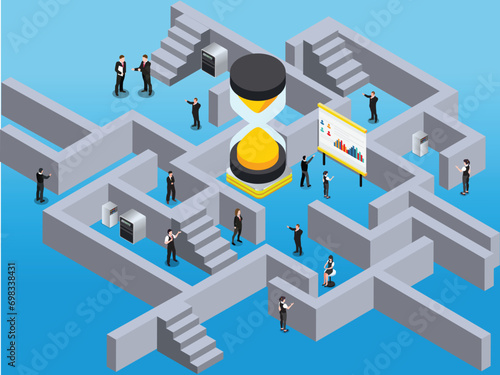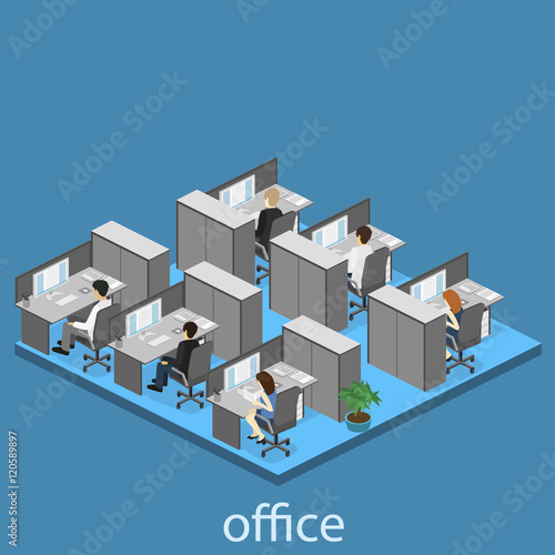 Vector illustration of businessman working at computer in private office situated in briefcase. Flat style design.
