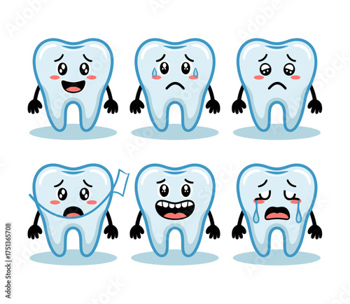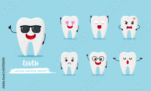 Funny human teeth set, vector isolated illustration. White brilliant healthy tooth, dental braces, implant and teeth whitening. Dental services concept for poster, banner etc.