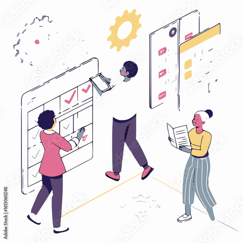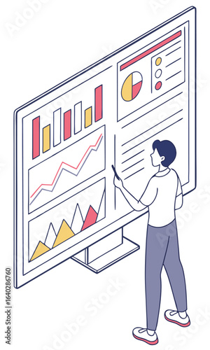 Professional designer presenting detailed wardrobe or cabinet drawings, flat vector illustration. Furniture design concept.