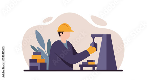 Vector illustration of plumber repairing washbasin in bathroom. Professional worker flat style design element, icon isolated on white background.