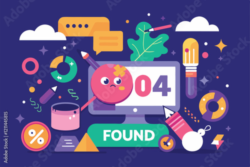 Vector flat style design illustration of desktop computer with human brain on monitor, book, globe, glasses, wallet with dollar coin, compact disc. Professional programmer concept for web banner etc.