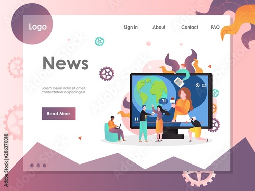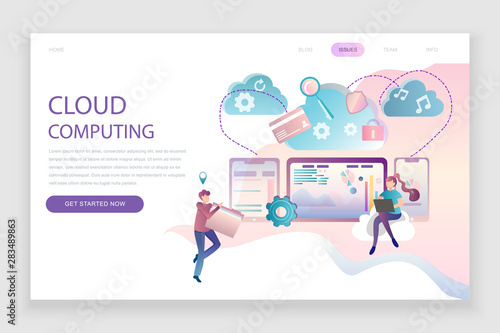 Programmer landing page template. Vector flat style design concept for software developer website and mobile site development. Computer with human brain on monitor, book, globe, glasses, compact disc.