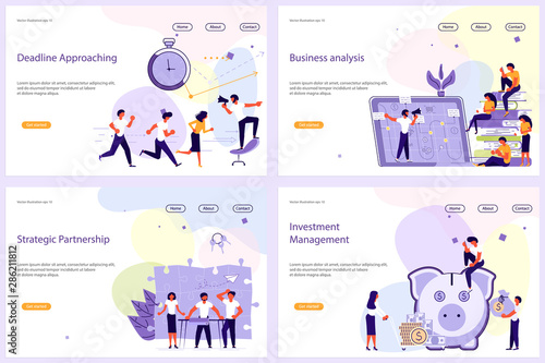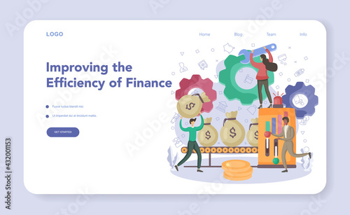 Project management and business analytics concept illustration. Team work with the dashboard. Financial analysis. Vector web site design template.