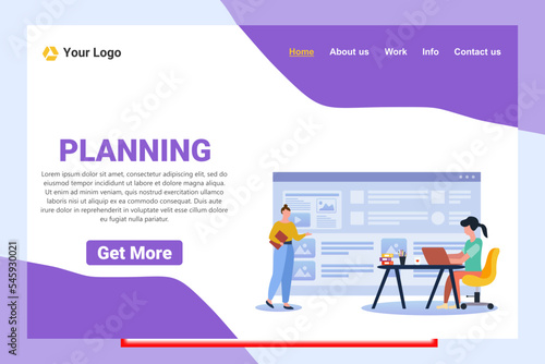 Project management vector website template, web page and landing page design for website and mobile site development. Project management software for teams to plan, track and collaborate online.