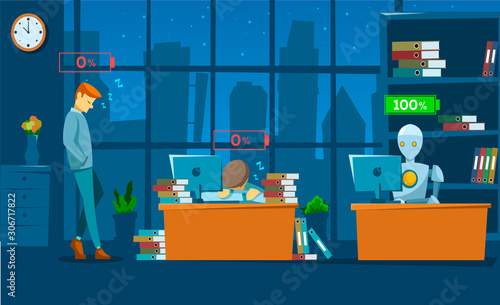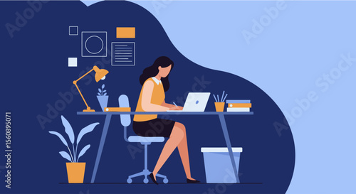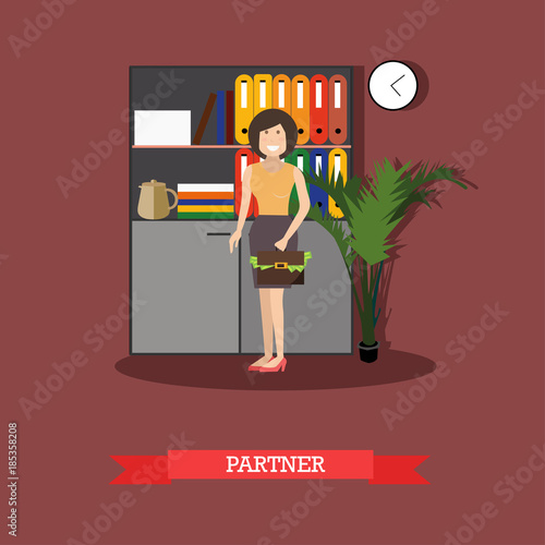 Vector illustration of butcher shop or supermarket and meat products promoter female. Flat style design.