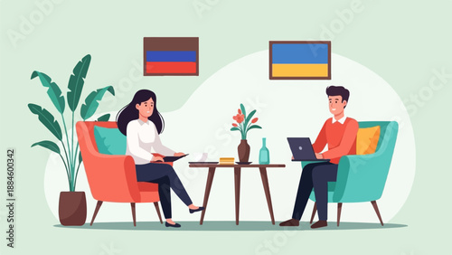 Promotional print and display stands. Sales promoters advertising company products to customer, flat vector isometric illustration. Exhibition booth. Trade fair or show equipment.