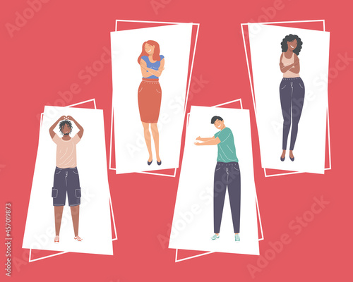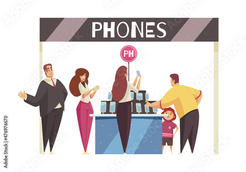 Promotional print and display stands. Sales promoters advertising company products to customer, flat vector isometric illustration. Exhibition booth. Trade fair or show equipment.