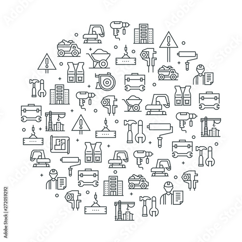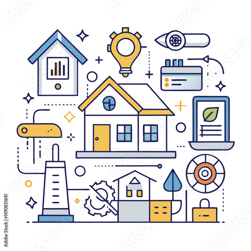 Property and real estate concept vector illustration. Modern thin line art flat style design element in the shape of house building for website banners and printed materials.
