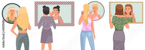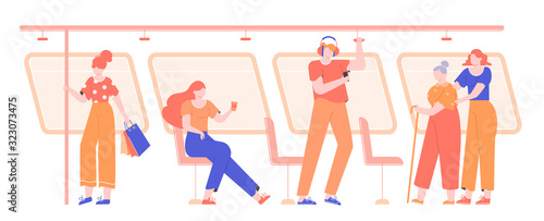 Public WC toilet people queue vector illustration. Man and woman of different age standing in line to restroom waiting at door scene
