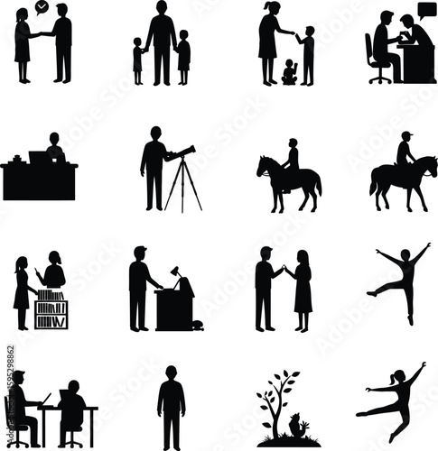 Punk or rock band people colored silhouette playing different musical instrument isolated set on white background. Young man and woman guitarist, singer, drummer, pianist vector illustration