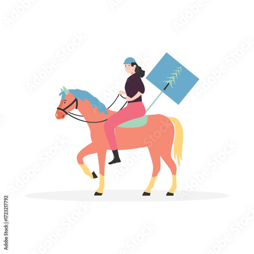 Race horse and lady jockey. Horseback riding concept flat vector illustration.