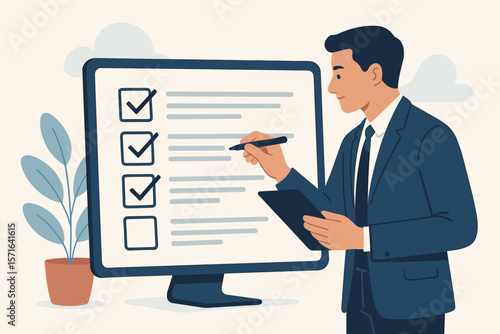 Vector illustration of man holding radio set. Radio people flat style design element, icon isolated on white background.