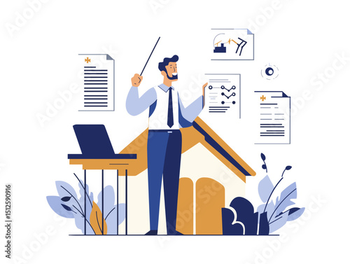 Vector illustration of musician guitarist in headphones playing guitar in radio. Radio people flat style design element, icon isolated on white background.