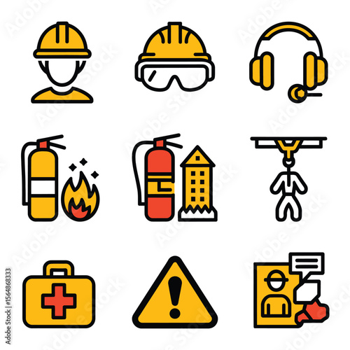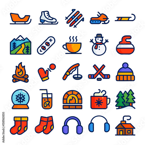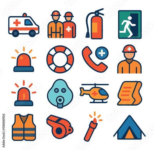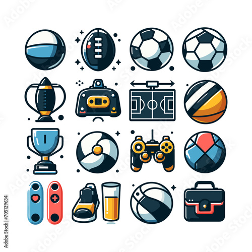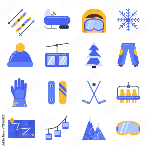 Rafting icon set. Vector illustration of white water rafting sport equipment, protective gear and camping items isolated on white background.
