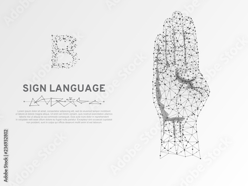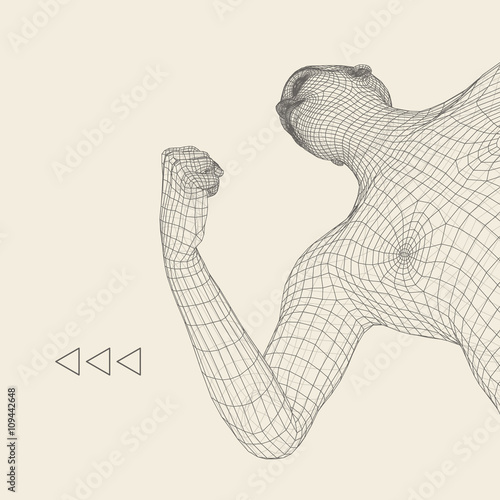 Raised hands low poly wireframe mesh made of points, lines and shapes. Vector polygonal art style illustration. Poster banner template with clenched fist symbol of power, fight, protest, resistance.