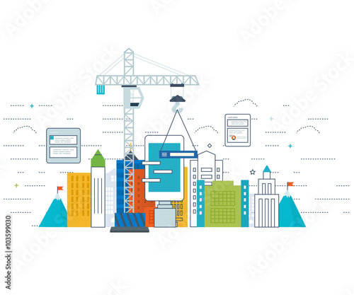 Raising bar graph with city elements, urban landscape. Vector illustration in paper art style. Modern city development.