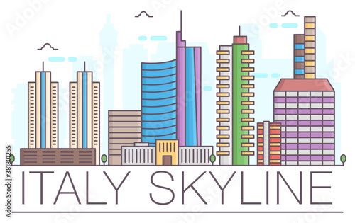 Raising bar graph with city elements, urban landscape. Vector illustration in paper art style. Modern city development.