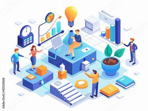 Real estate auction, flat vector isometric illustration. House for sale on podium, people with bid paddles. Auction and bidding scene.