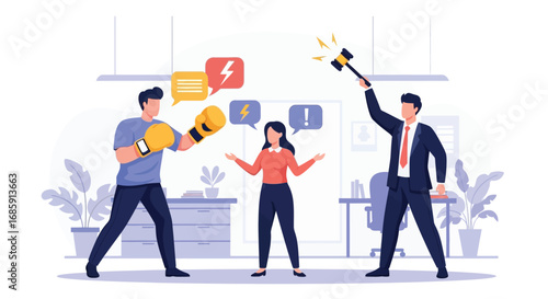 Real estate house auction vector concept illustration. Auctioneer calling out prices with gavel in hand, bidders offering prices. Property buying and selling composition for web banner, website page.