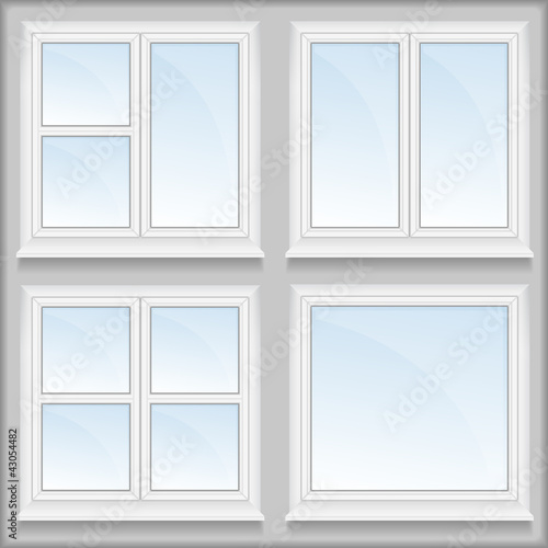 Realistic acrylic glass window with wide frame mockup isolated set. Transparent plastic rectangle signboard with copy space vector illustration