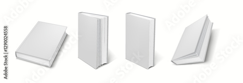 Blank folded paper sheet isolated vector set. Realistic white leaflet design template. Empty folding brochure page with copy space