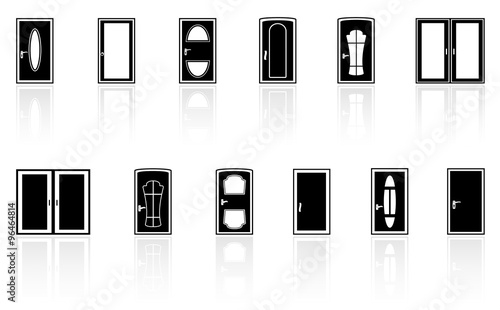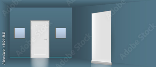 Hospital corridor with closed doors realistic vector background. Clinic hallway, emergency office interior or laboratory walkway illustration