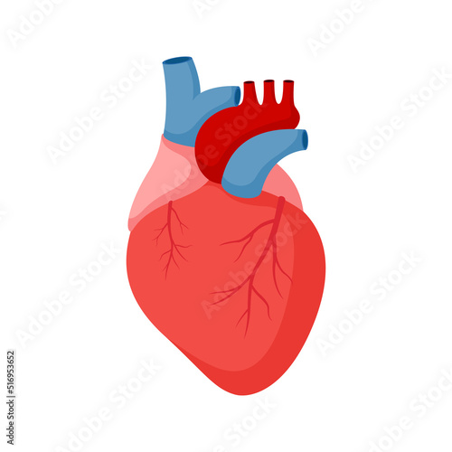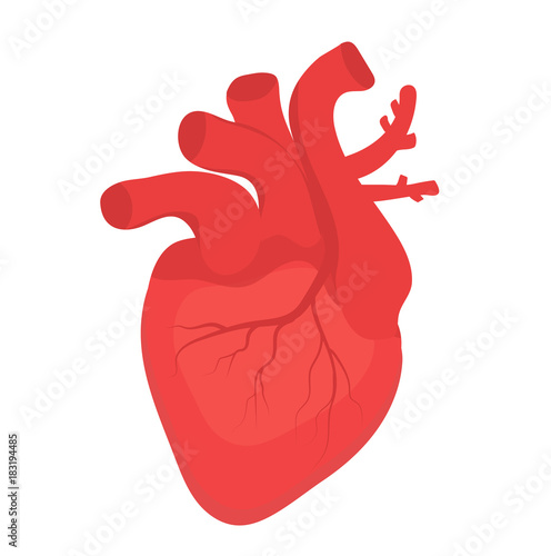 Realistic human heart vector illustration. 3d cardiology model isolated on white background. Red heart, internal organ, anatomy icon