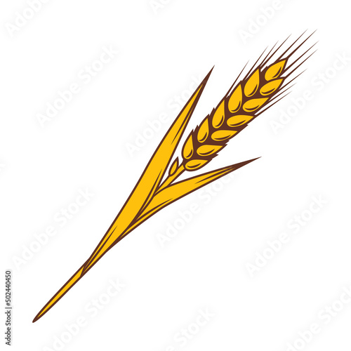 Vector wheat ears over milk splash icon. Realistic organic vegetarian food packaging design element isolated on white background