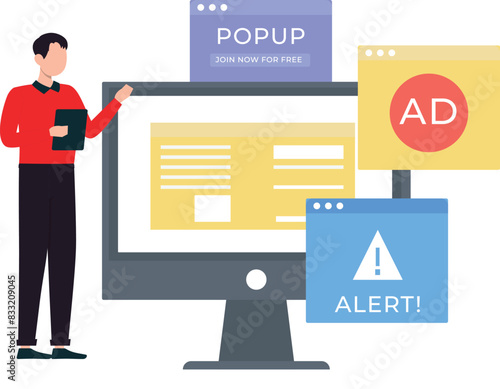 Reception desk and receptionist vector icon isolated on white background