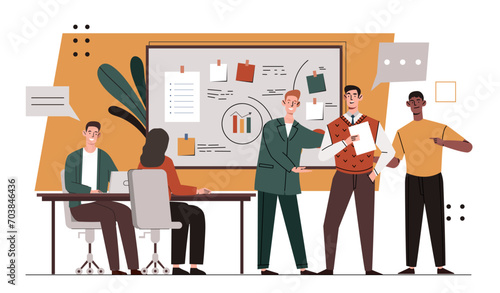 Vector illustration of scientist female working at lab. Laboratory interior and equipment. Recording results concept flat style design element.