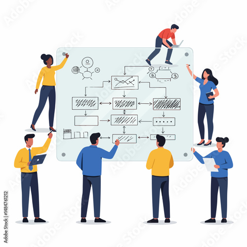 Recruitment, vector flat style design illustration. Woman employment agency worker giving cv to running man. Choosing the best resume, employee selection process concept for web banner, website page.