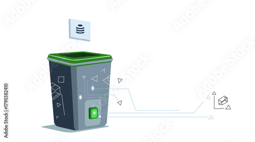 Recycle garbage plastic bin for battery waste isometric vector. E-waste sorting basket isolated on white background. Ecology care, environment pollution presentation and nature conservation
