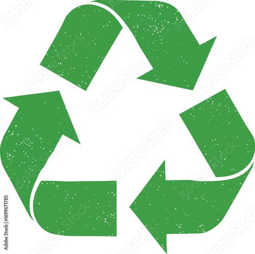 Recycle sign with leaves and flowers inside, vector illustration in paper art style. Eco friendly waste reuse and recycling symbol, label.