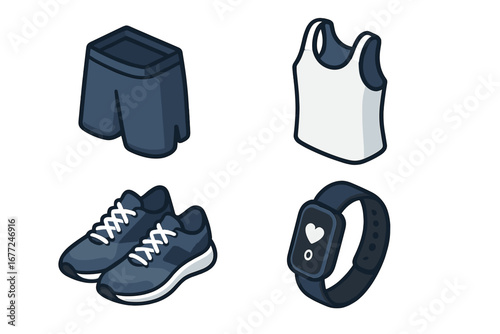 Red women sports bra or crop top and shorts mockup set, vector illustration, front, back and side view. Sportswear fashion, training clothes template.