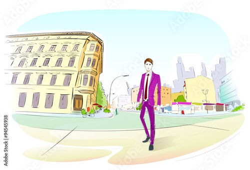 Refugees people run away from city bombing vector. Sad mother, father and daughter fleeing burning house. Stop war concept