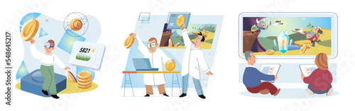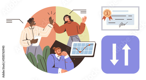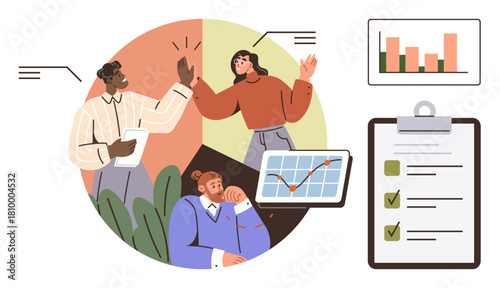 Relatives communicating online via group video call chat, flat vector illustration. Virtual meeting, connection with family and friends. Video conference technologies.