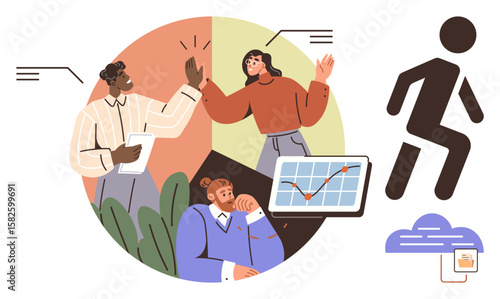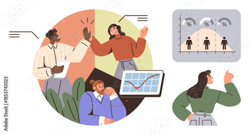 Relatives communicating online via group video call chat, flat vector illustration. Virtual meeting, connection with family and friends. Video conference technologies.