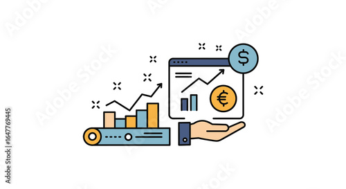 Reliable bank vector flat style design illustration. Hand holding money, credit card, piggy bank, wallet, calculator, magnifier, mobile phone. Reliable savings concept for web banner, website page