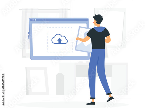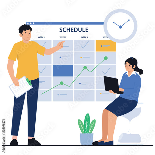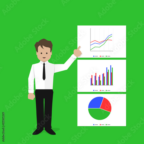 Businessman giving online presentation from home office, vector flat illustration. Remote presentation, conference, meeting. Stay at home in quarantine, coronavirus COVID-19 disease spread prevention.