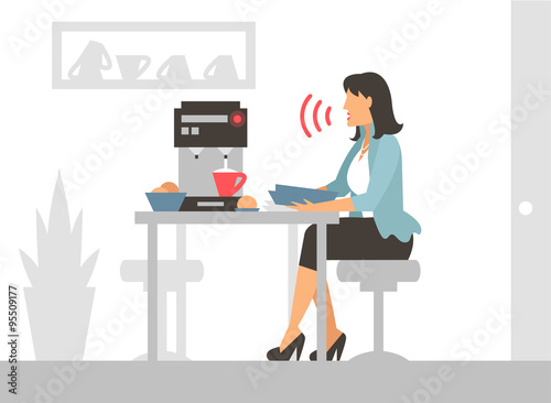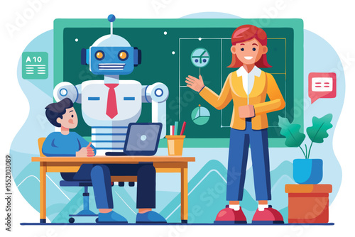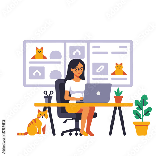 Teaching from home, vector flat illustration. Online education, e-learning, remote teaching, stay home in quarantine, self isolation, social distancing preventive measures due to coronavirus pandemic.
