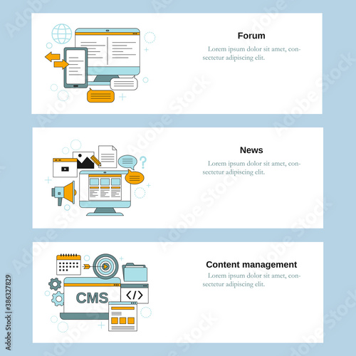Remote team meeting chat, audio conferencing. Tools for remote work, online communication. Mobile app screens. Vector banner template for website and mobile development. Web site design illustration.