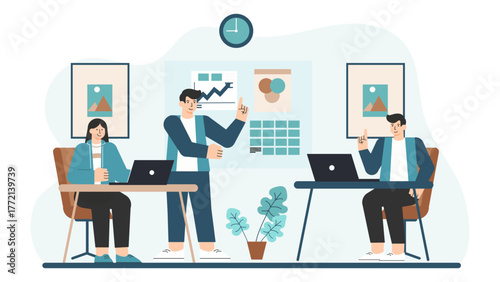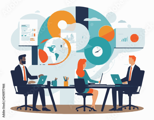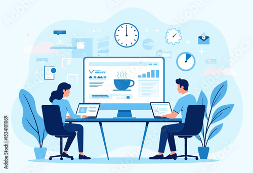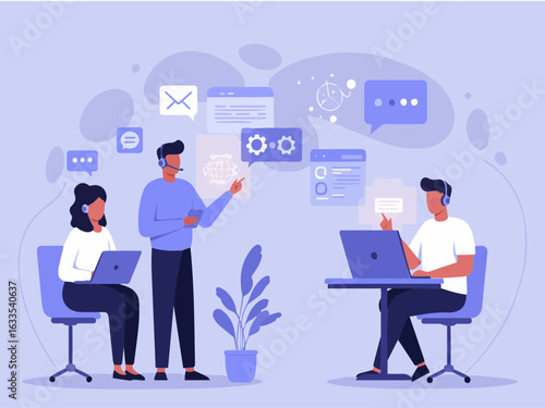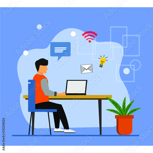 Remote team working concept vector. Work from home illustration in flat style design. Remote business control and project management. Freelance job. Social network and internet friends concept.