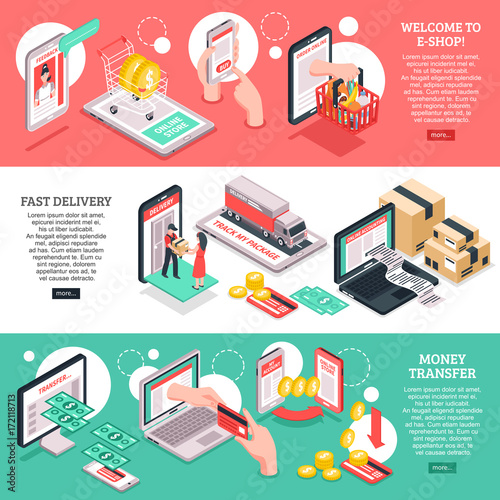 Remote work vector poster template set. Home workspace interior, business people working from home office using computer and internet connection. Social distancing during coronavirus quarantine.
