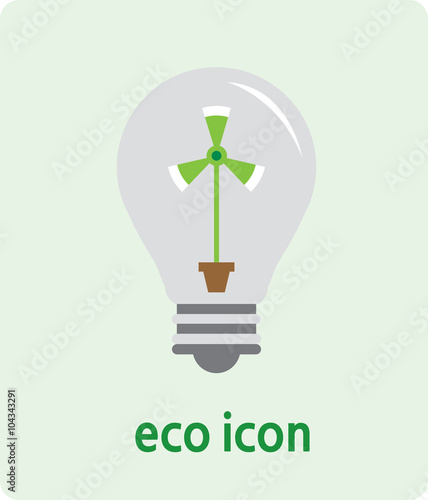 Renewable energy concept vector flat illustration. Windmills wind turbines and green trees inside of light bulb. Wind power alternative energy resource. Ecology protection and environment conservation