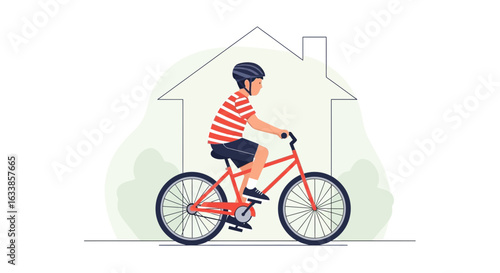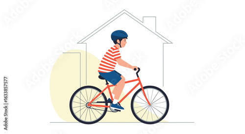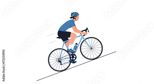 Two micro male characters holding huge bicycle and man riding bike, vector illustration. Rental service concept for web banner, website page etc.
