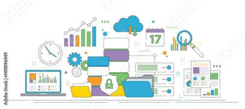 Vector illustration of plumbers repairing washbasin in bathroom. Residential plumbing and drain cleaning services concept flat style design elements.
