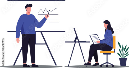 Two friends drinking beer and talking to each other while sitting at table, vector flat illustration isolated on white background. Restaurant beer concept for web banner, website page etc.