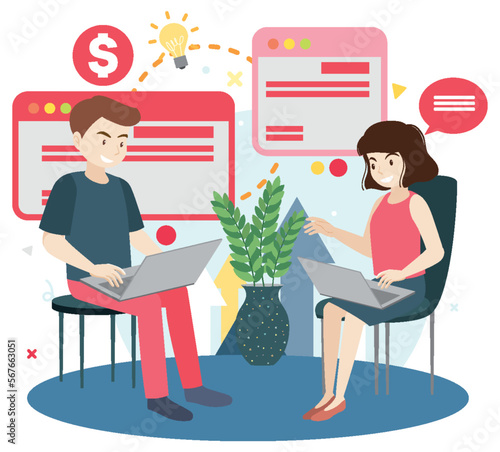 Romantic couple sitting at restaurant table and drinking champagne, vector flat illustration isolated on white background. Restaurant catering business.