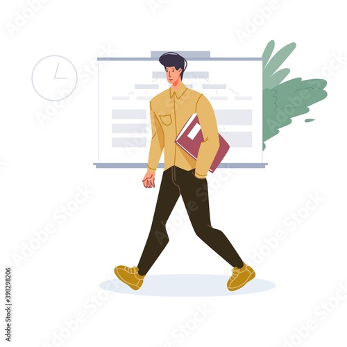 Waiter holding silver serving platter in one hand and menu in the other, vector flat illustration isolated on white background. Restaurant dish concept for web banner, website page, etc.