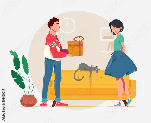 Restaurant guest vector illustration. Visitor female with wineglass sitting at table and waitress filling wine glass flat style design elements isolated on white background.